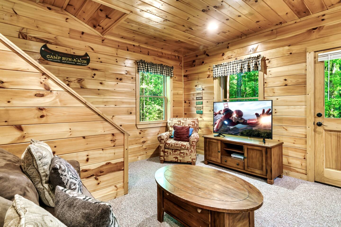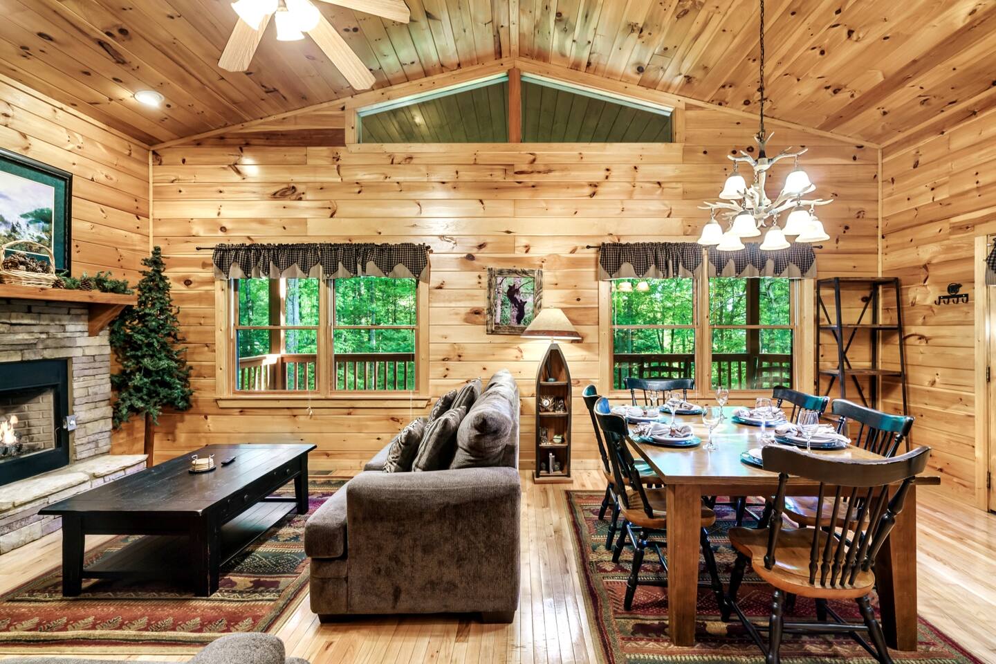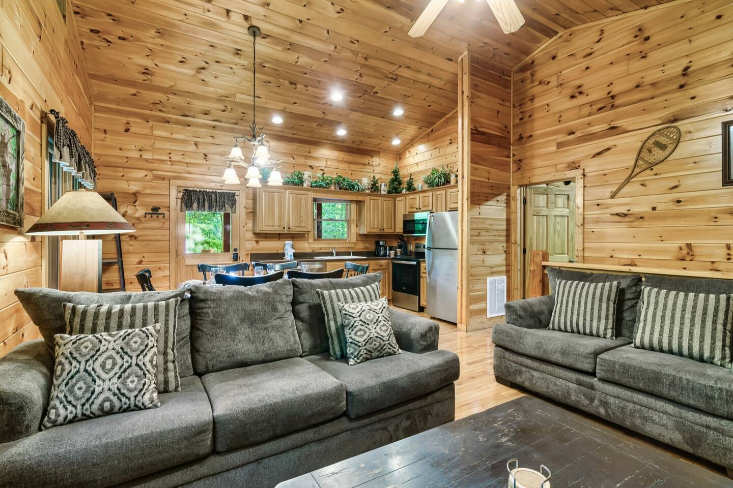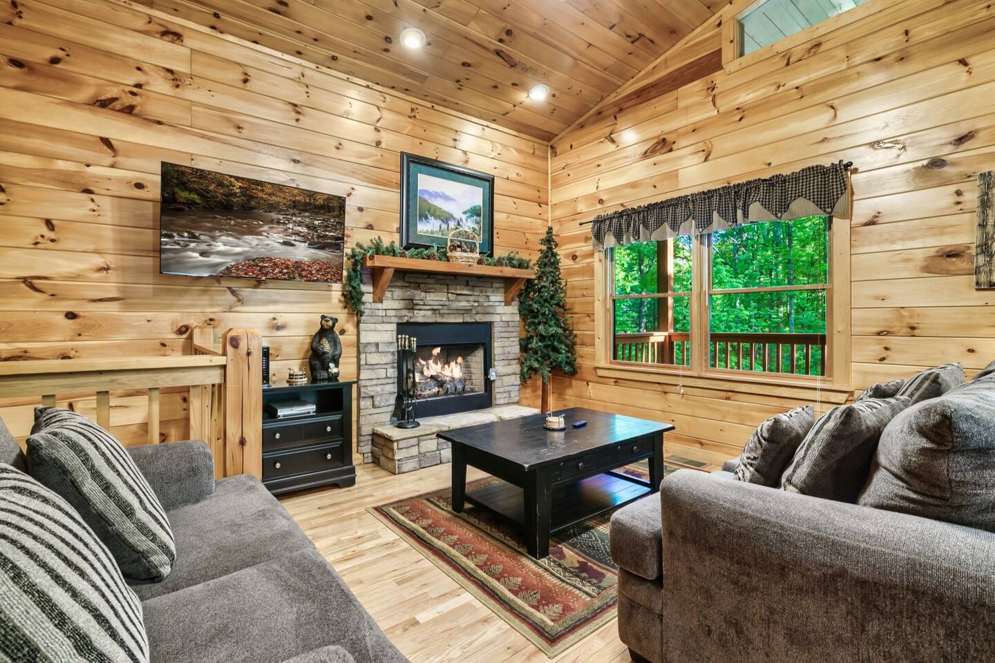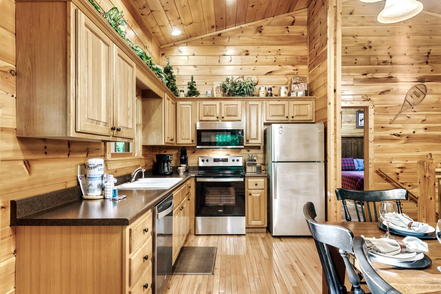 Nestled in the serene beauty of the Smoky Mountains, Tall Timbers Cabin is your perfect retreat for a peaceful getaway. This charming 2-bedroom, 2-bath log cabin sleeps up to 6 and blends rustic charm with modern comforts. Relax on the expansive deck surrounded by nature, soak in the private hot tub, or cozy up by the fireplace after a day of adventure. Inside, enjoy a fully equipped kitchen, open living area with soaring ceilings, and cozy furnishings that create a warm, inviting atmosphere. Each bedroom offers plush bedding for restful nights, while the game room with pool table adds a fun touch for families or friends. Just minutes from the Great Smoky Mountains National Park, you’re perfectly positioned for hiking, wildlife spotting, or exploring nearby Gatlinburg and Pigeon Forge’s attractions, dining, and entertainment. Whether you’re seeking romance, family fun, or outdoor thrills, Tall Timbers Cabin is your home away from home in the heart of the Smokys! Superhost care, 4.9-star cleanliness, lightning-fast replies, flexible cancellation policy and thoughtful touches await your stay! * Hot tub with color changing LEDs * Firepit * Pool table * Jacuzzi tub * High speed WiFi * Infinity game table * Keyless entry * Central air/heat * 2 King size beds * 1 Sleeper sofa * Fireplace - gas log * 4 Roku smart TVs * Sony Bluetooth speaker * Washer/Dryer * Full kitchen w/ Stainless appliances * Off street Parking * Charcoal grill w/ hood * Baby safety gate * Pack n Play * Mini fridge (downstairs by pool table) * 12 miles to Pigeon Forge * 17 miles to Gatlinburg * 7 miles to Townsend Kitchen is fully equipped with 4 burner electric stove, microwave, standard and Keurig coffee makers, cookware, utensils, silverware, and glassware.