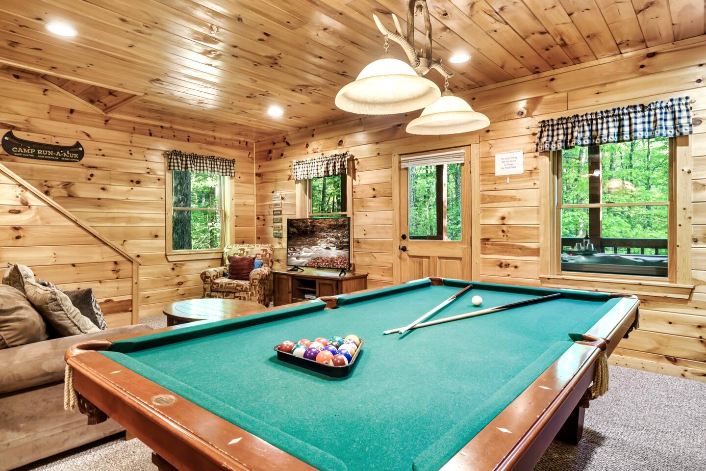Your private outdoor getaway planted in the foothills of Roundtop Mountain range in Wears Valley. Located directly between Townsend and Pigeon Forge off highway 321 in the backyard of Great Smoky Mountain National Park and minutes away from Gatlinburg, Pigeon Forge, and Townsend One half acre surrounded by trees. Enjoy the wrap-around porch featuring rocking chairs and picnic table. Cabin offers hot tub, pool table, firepit, WiFi, and many other amenities!